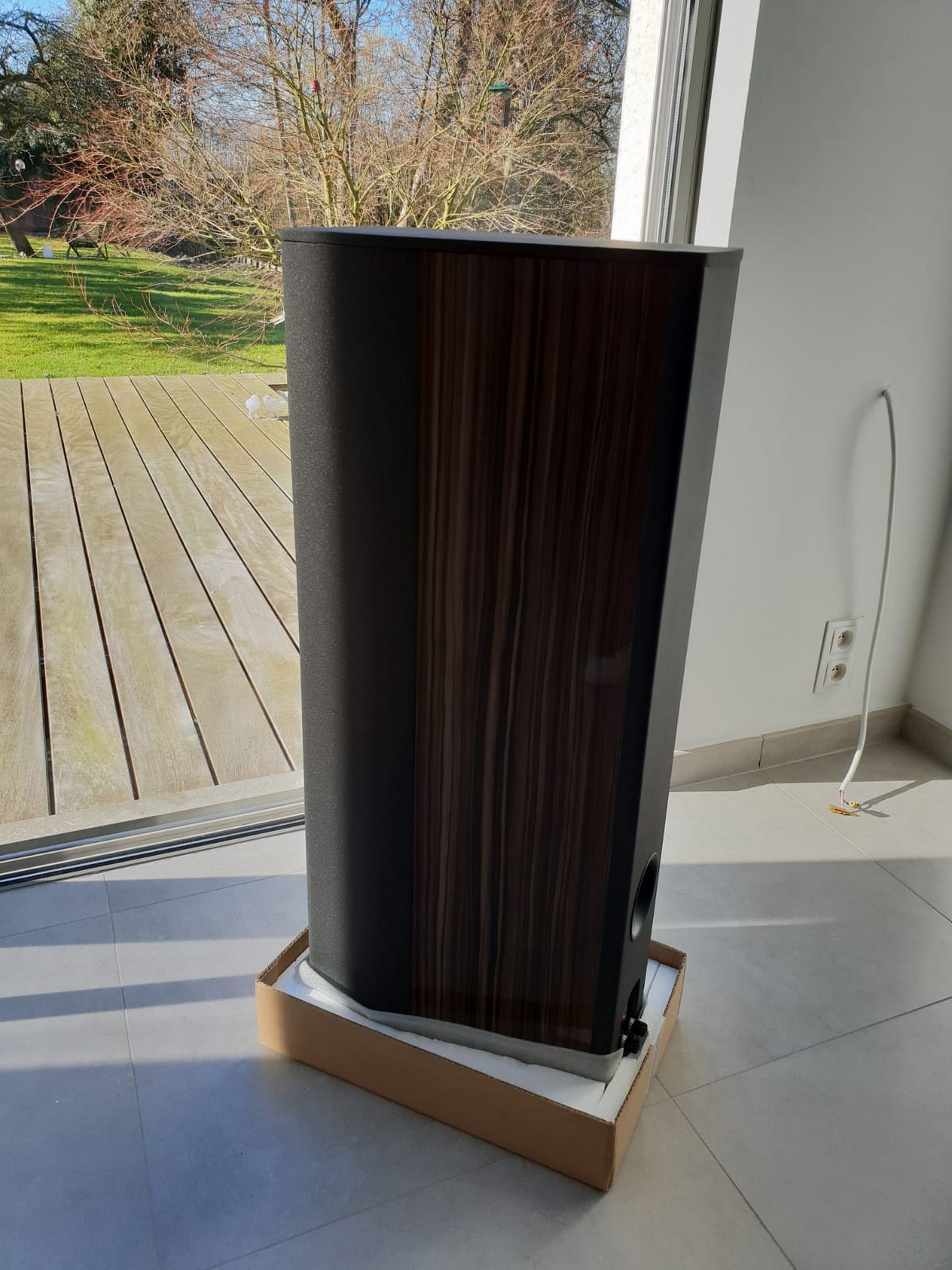 Nous lui avons livré et installé ses nouvelles enceintes avec des Audio Solutions Figaro S en lieu et place de ses Mulidine.