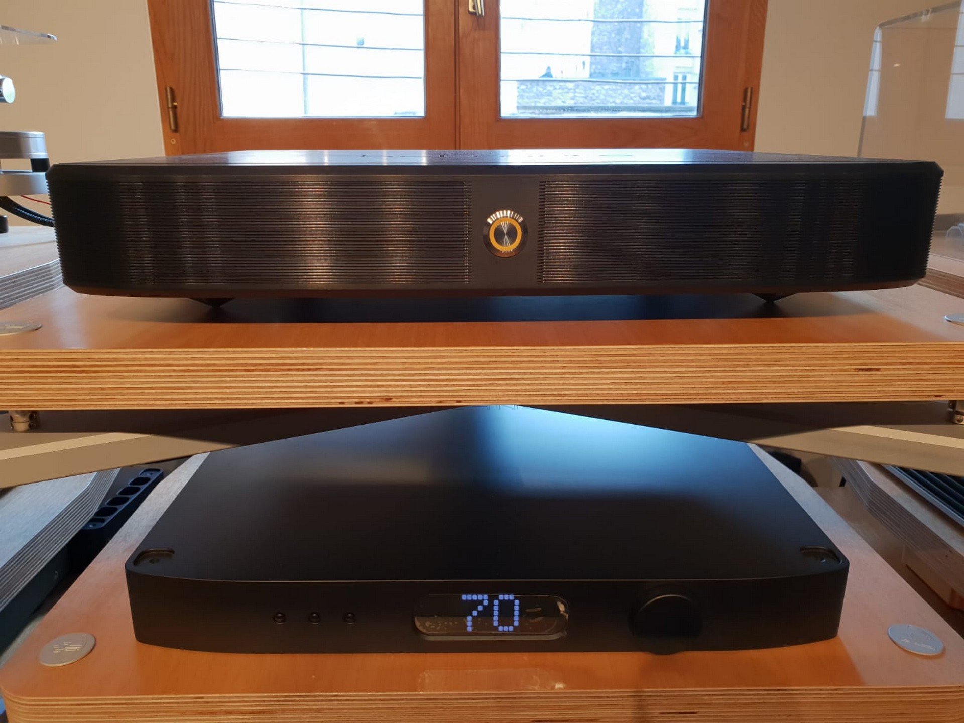 Musicalement, il est assez doux surtout pour du digital, avec un coté tube très agréable; la tenue du grave est étonnante, même sur des grosses enceintes gargantuesques comme sur des Rockport Aquila chez un de nos clients. Une foule de détails apparaissent naturellement et la scène sonore est bien étagée, tant en largeur qu'en profondeur. Dernier point plus qu'agréable: sa réactivité sans trainage.