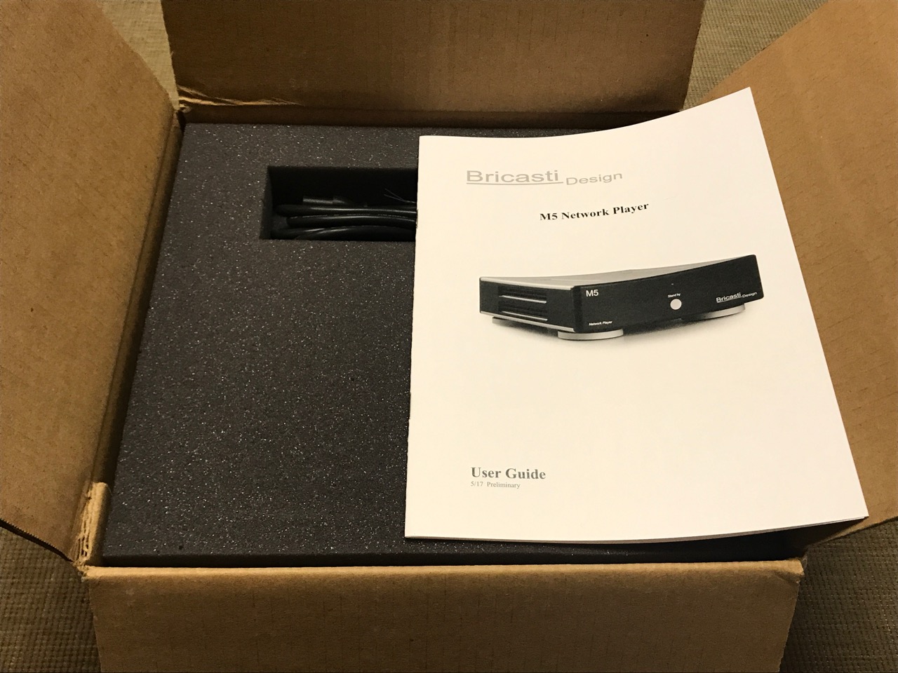 Notez le DAC BRICASTI M1Gold en arrière plan, une bête extraordinaire, sur laquelle on raccorde d'ailleurs le M5 pour notre découverte et nos essais