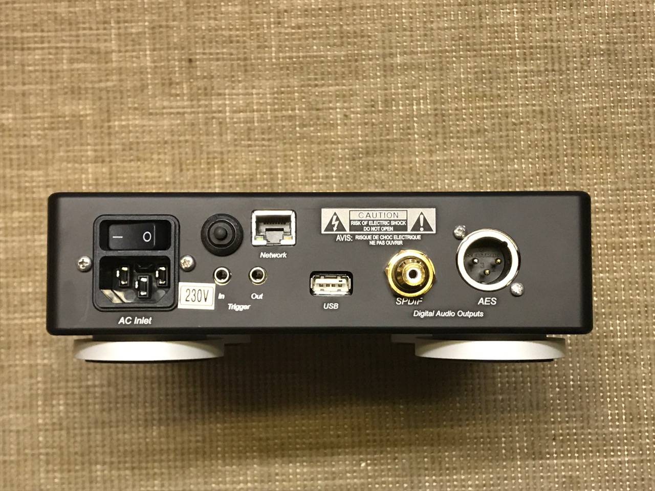 Connectique: entrée réseau (penser au filtre réseau en optimisation), sorties AES, SPdif et USB