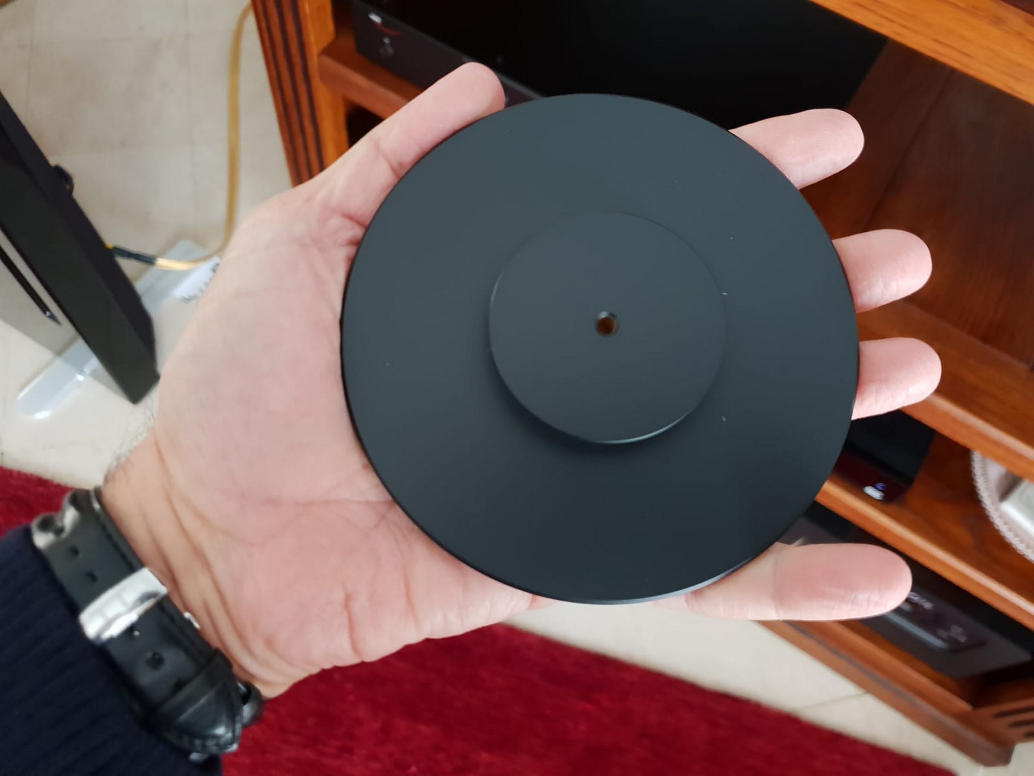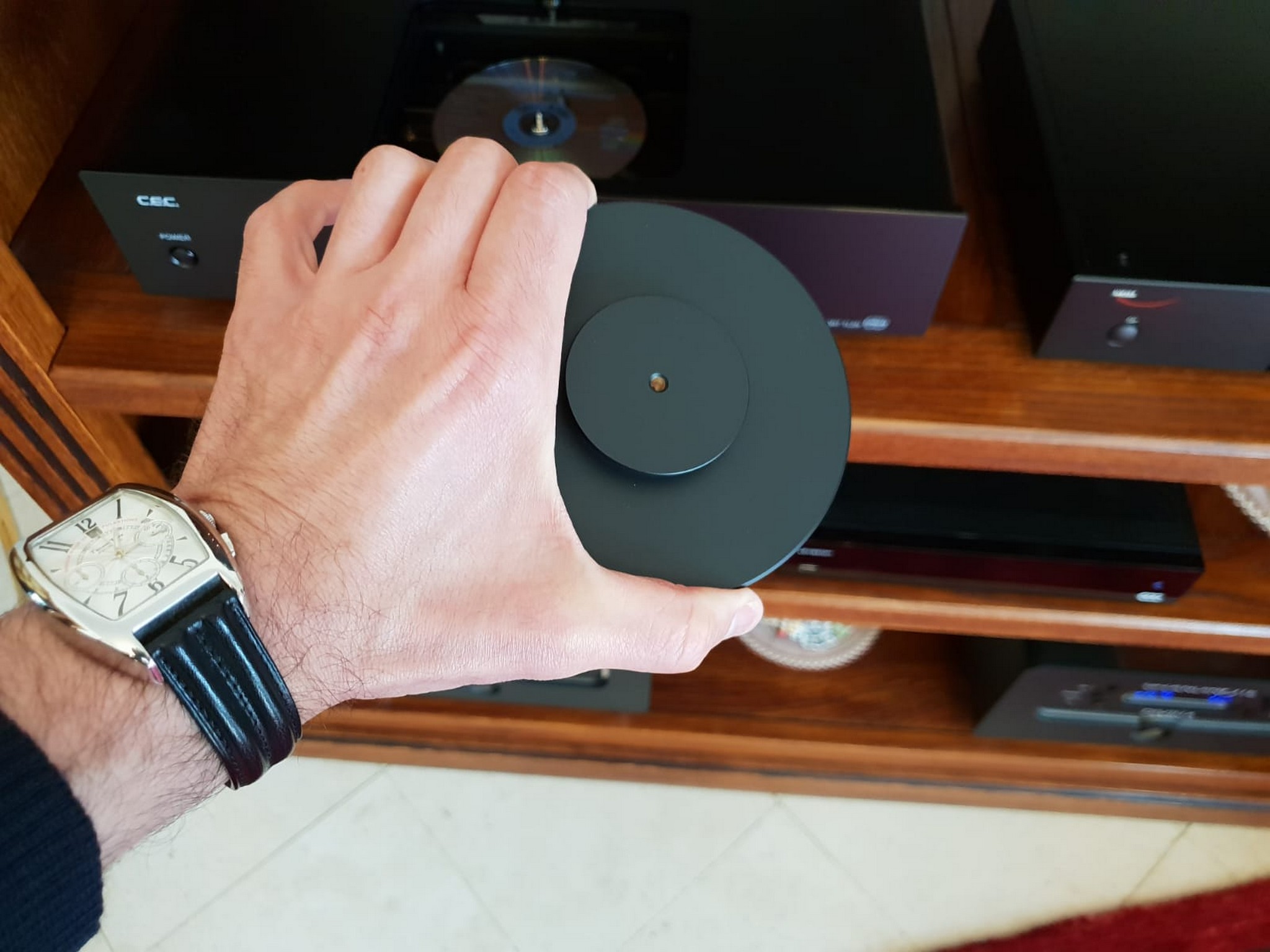 Celui ci est d'un poids conséquent assurant ainsi un alignement parfait du CD face à la lentille.