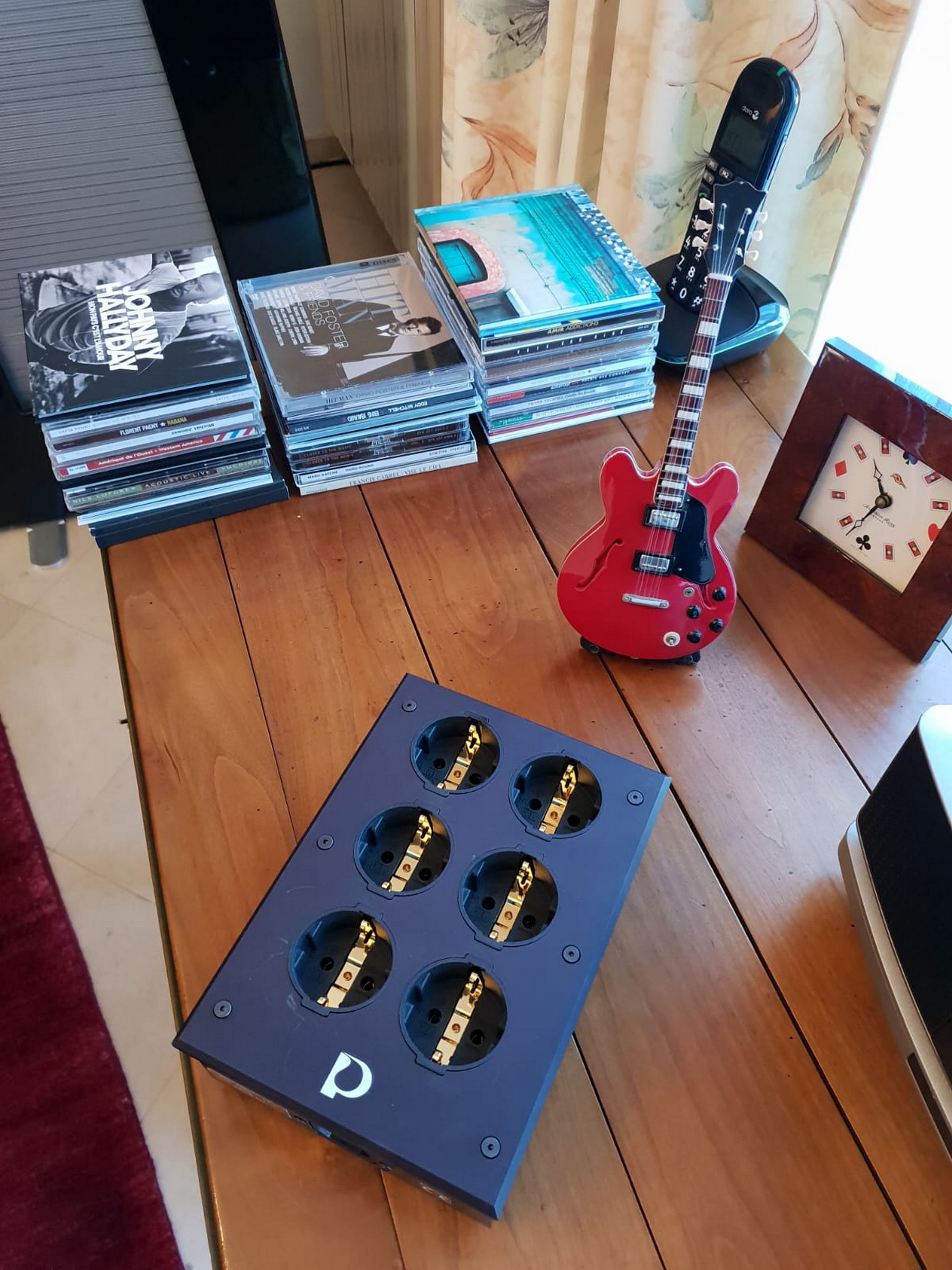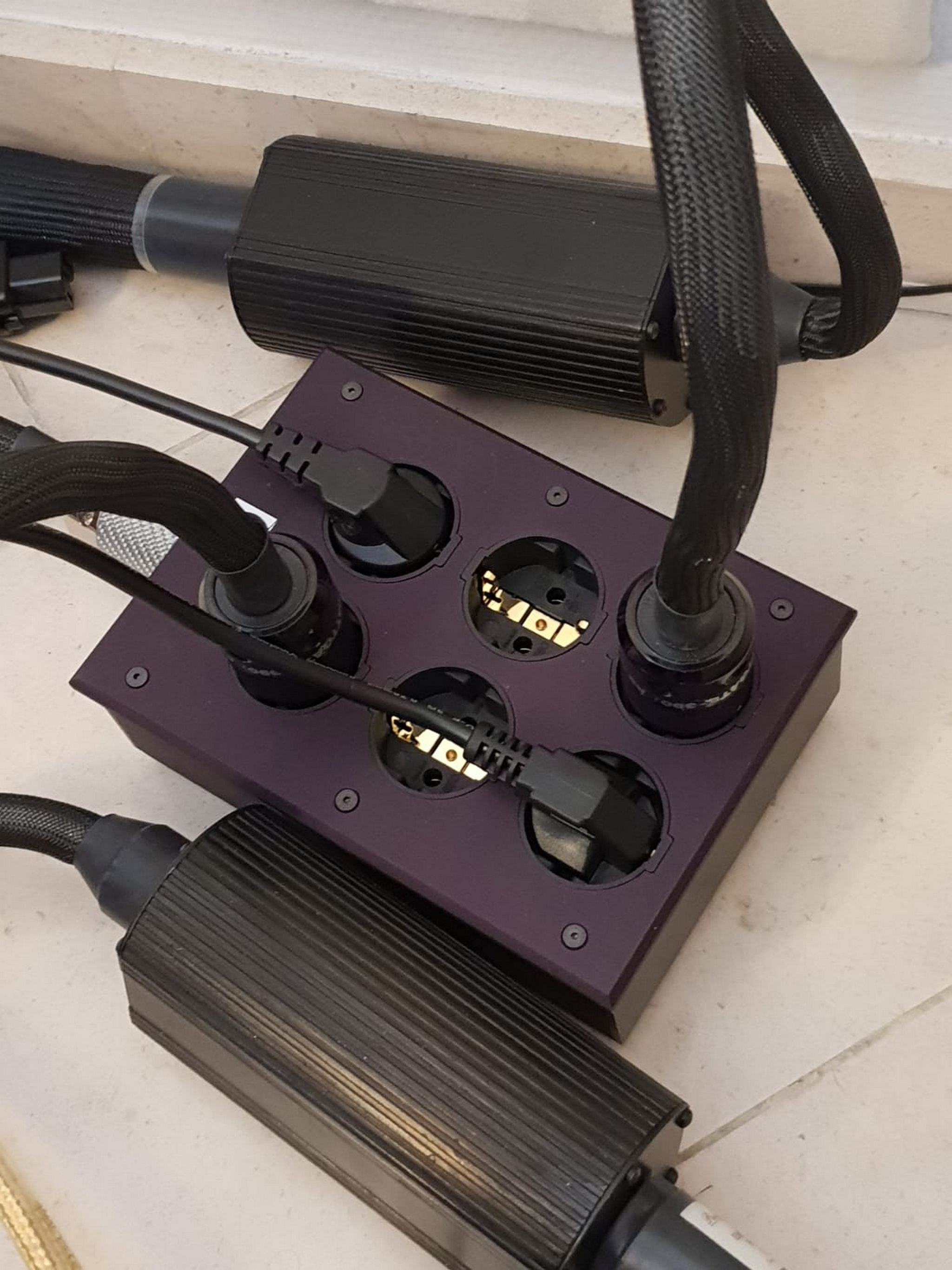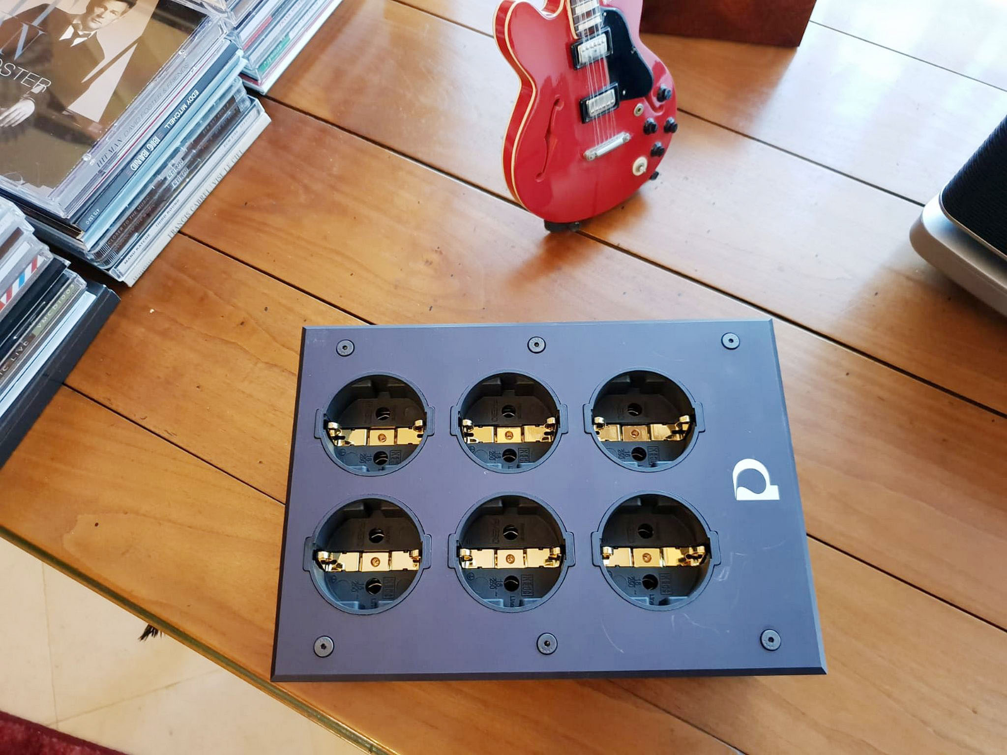 Elle se présente sous un bloc massif d'aluminium muni de 6 prises schuko, vous permettant ainsi de choisir la position de la phase.