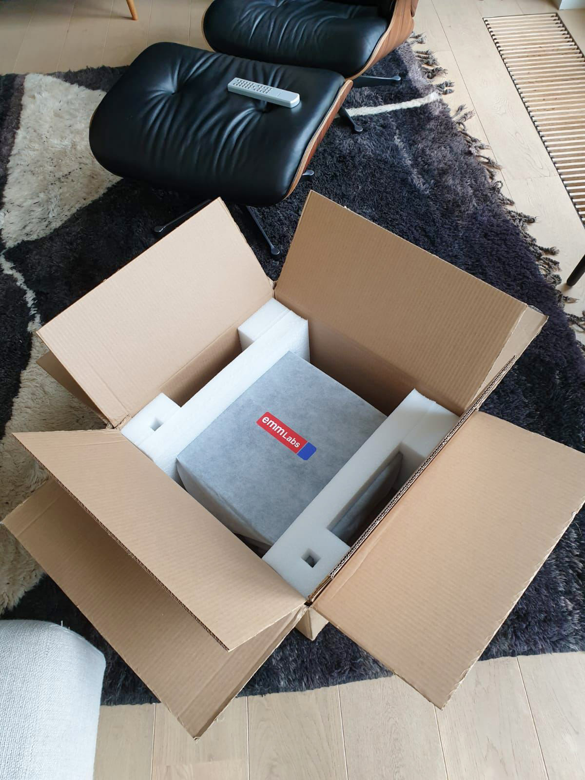 Nous lui avons livré et installé son nouveau bébé qui a un rôle plus qu'important, ayant pour mission d'être le chef d'orchestre de toutes les sources digitales. Il a été choisi dans la finition noire; une finition silver est également disponible (voir celle de notre EMM Labs DV2 en écoute à l'auditorium).