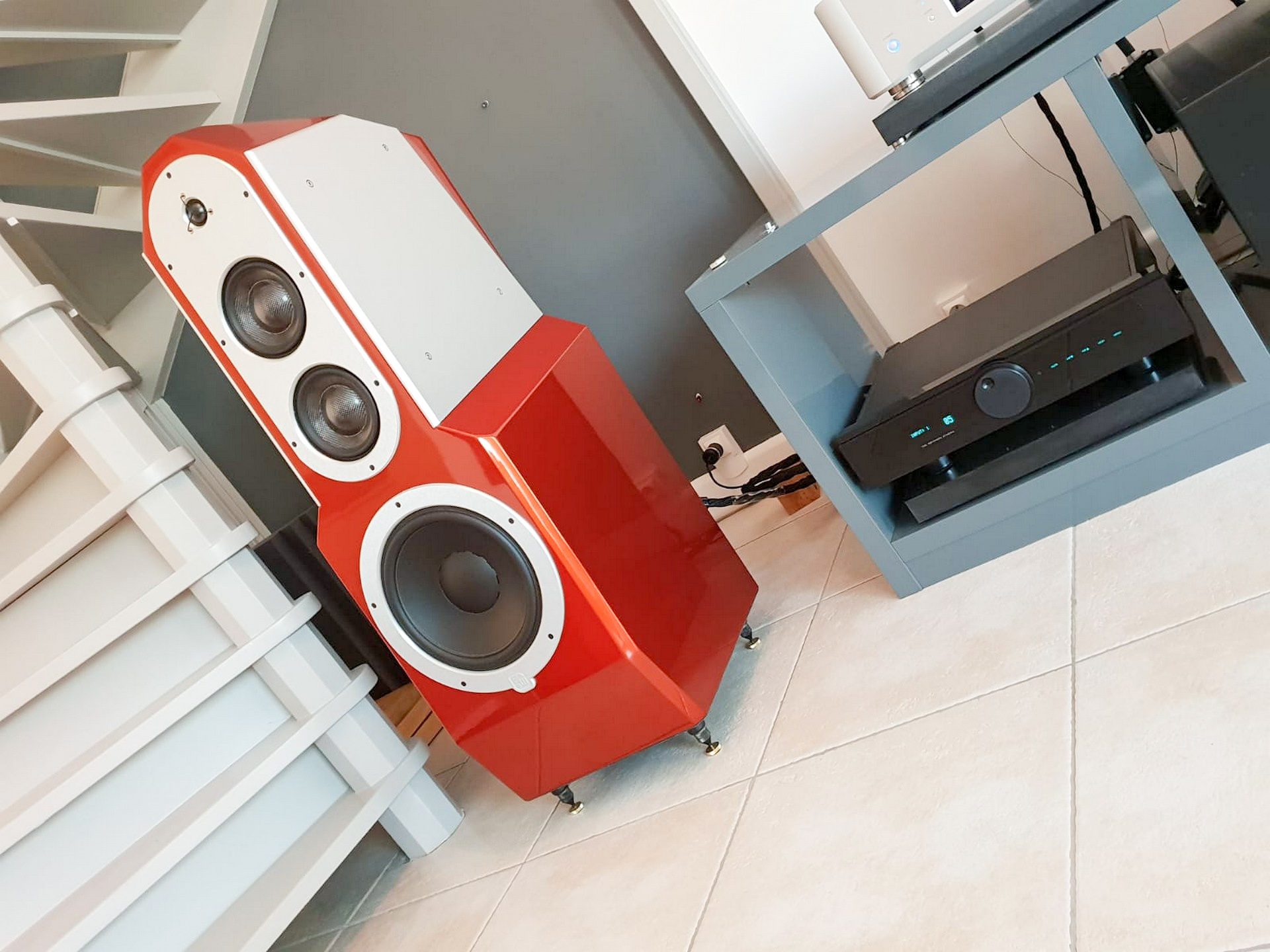 Les haut-parleurs font appel à un tweeter Esostar de chez Dynaudio pour l'aigu, et du Morel pour le médium et le grave.