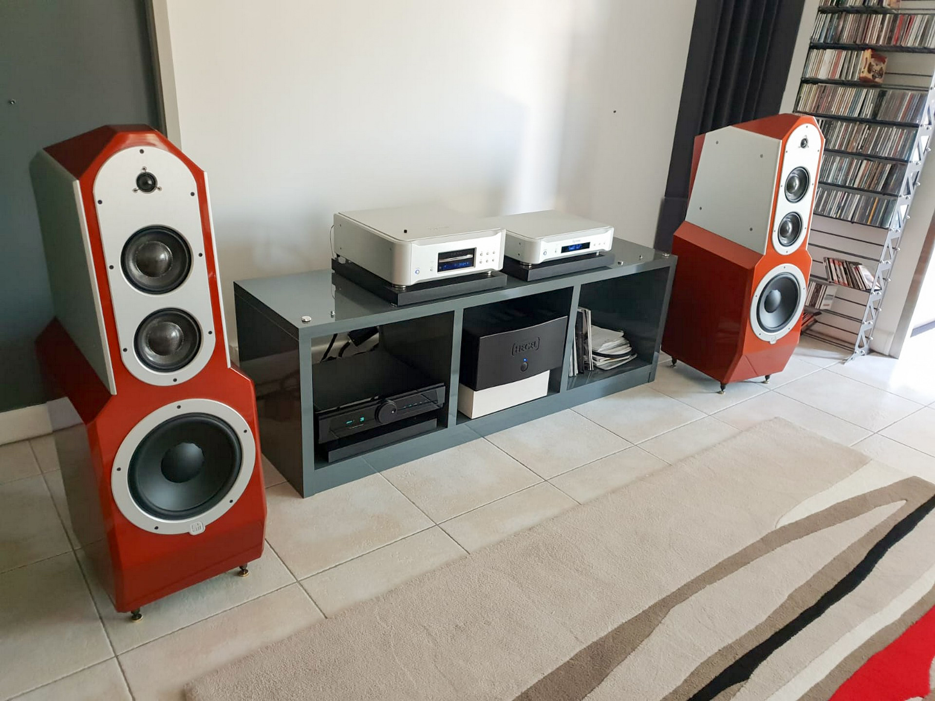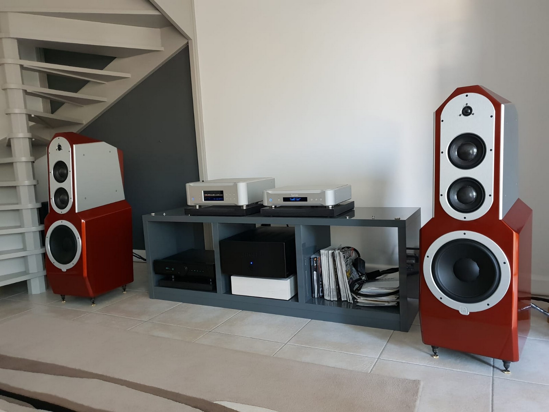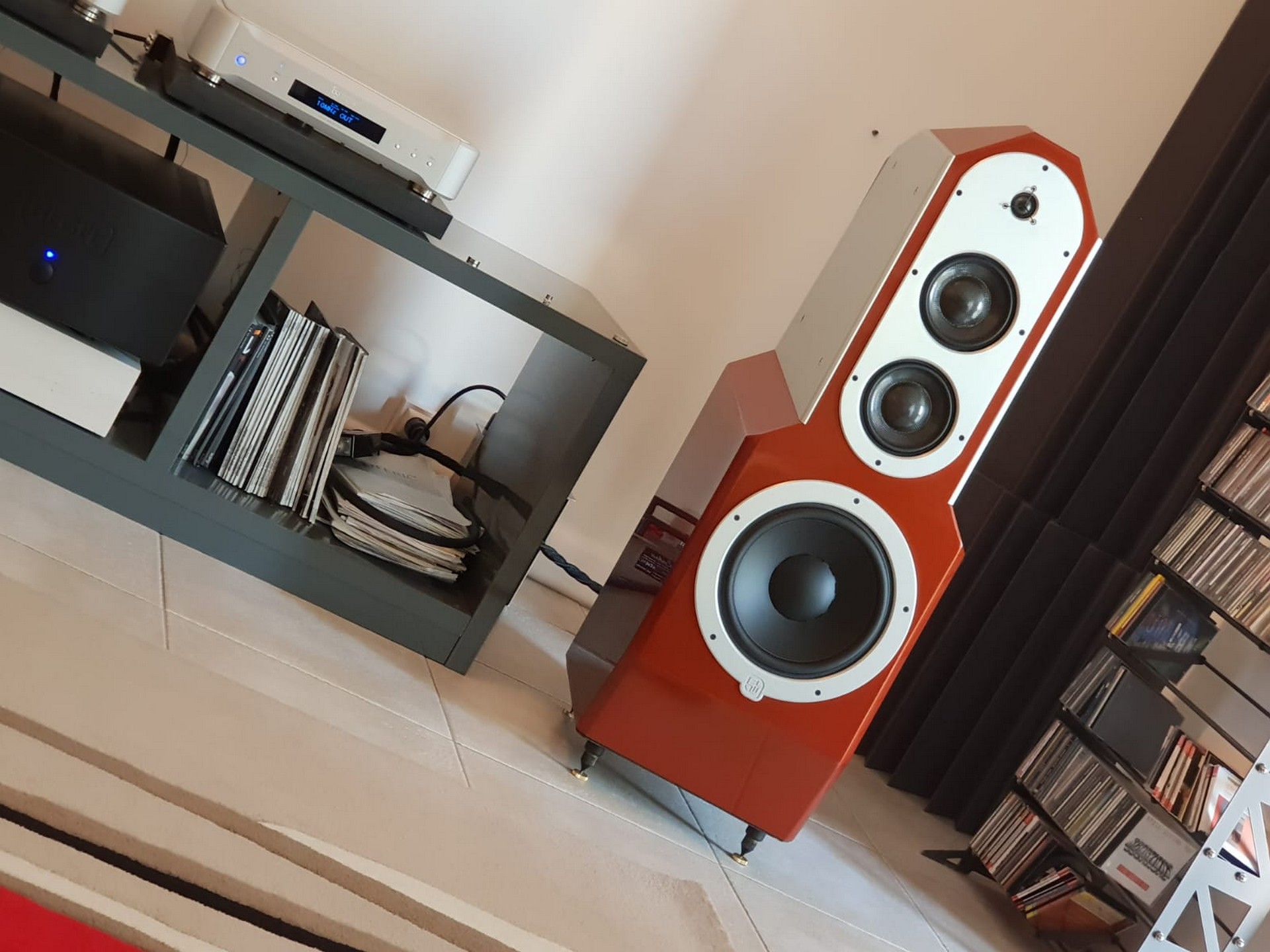 Les belles du système de Marc sont des Egglestonworks Andra 3, une icône de la hifi reconnaissable entre milles grâce à sa plastique propre et à ses lignes anguleuses.