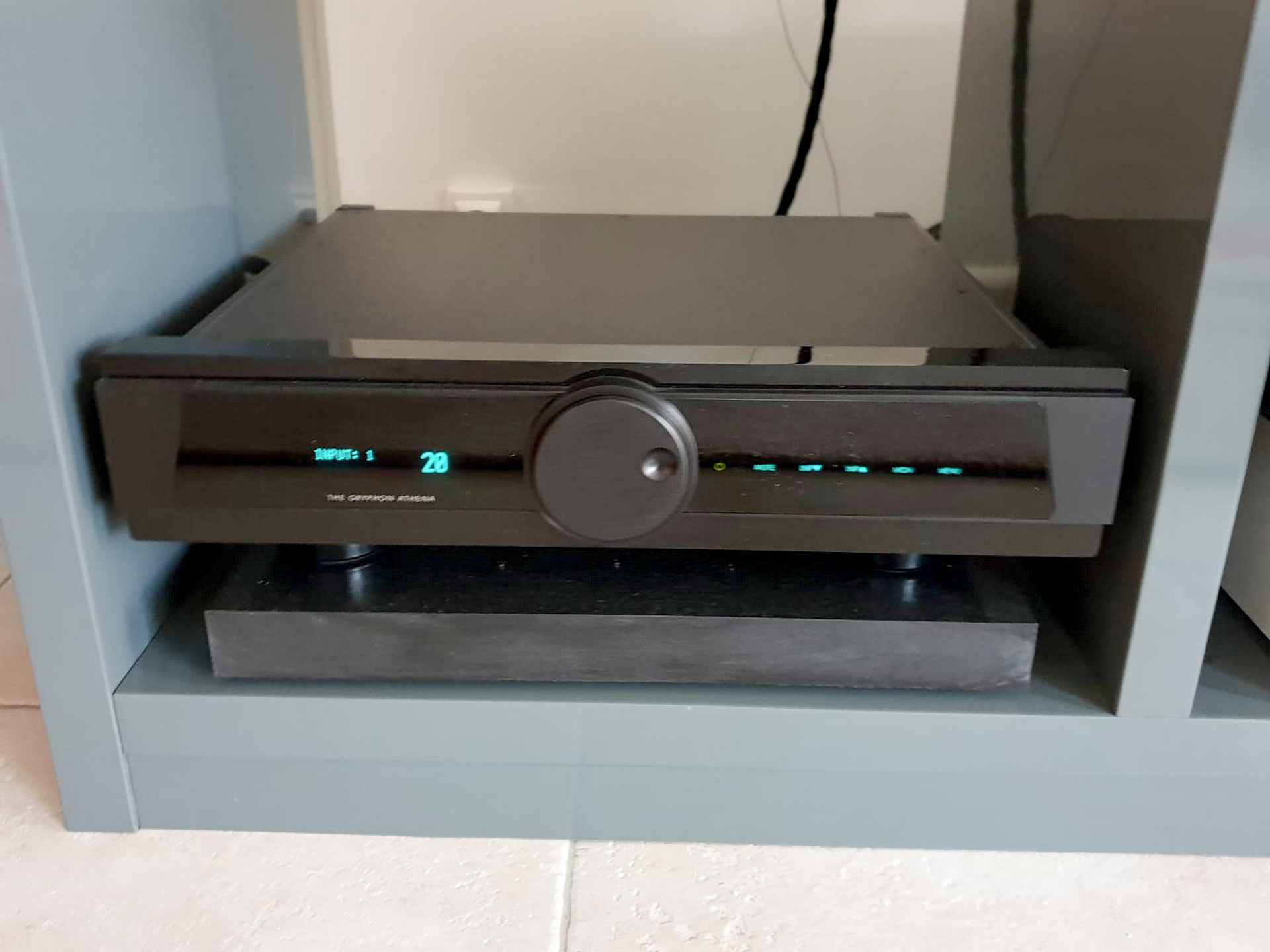 Le préamplificateur est le Gryphon Athena qui tient d'une main de maître les enceintes, "Gryphon oblige". Il distille un très beau raffinement sonore plein de délicatesse et de fluidité. Le système gagne en naturel.