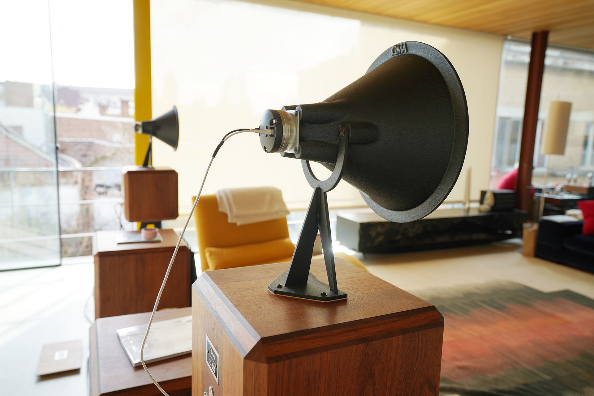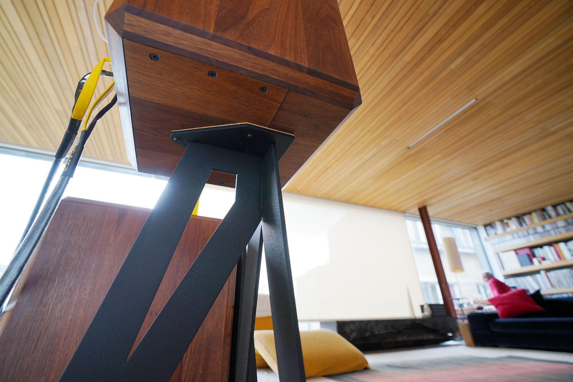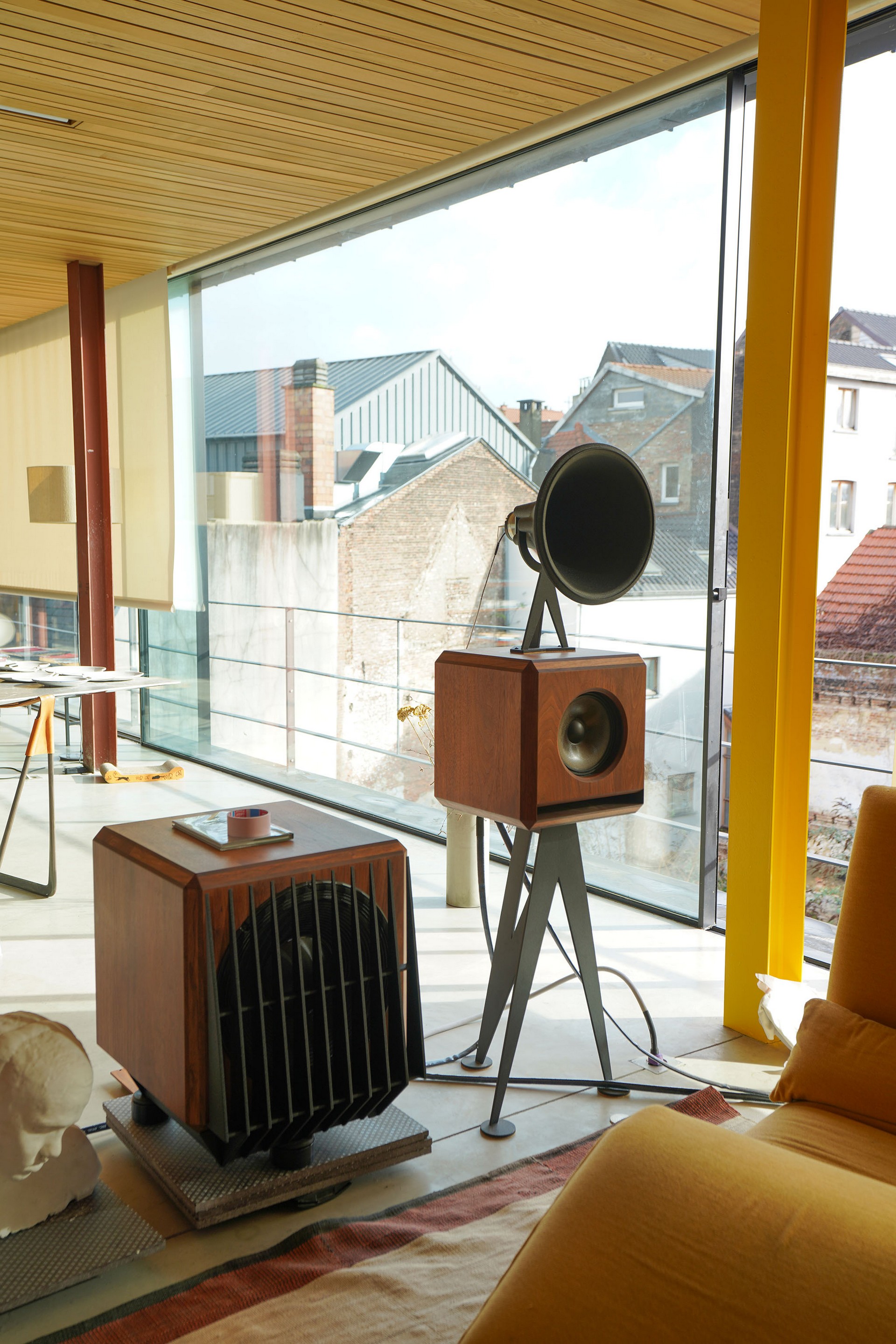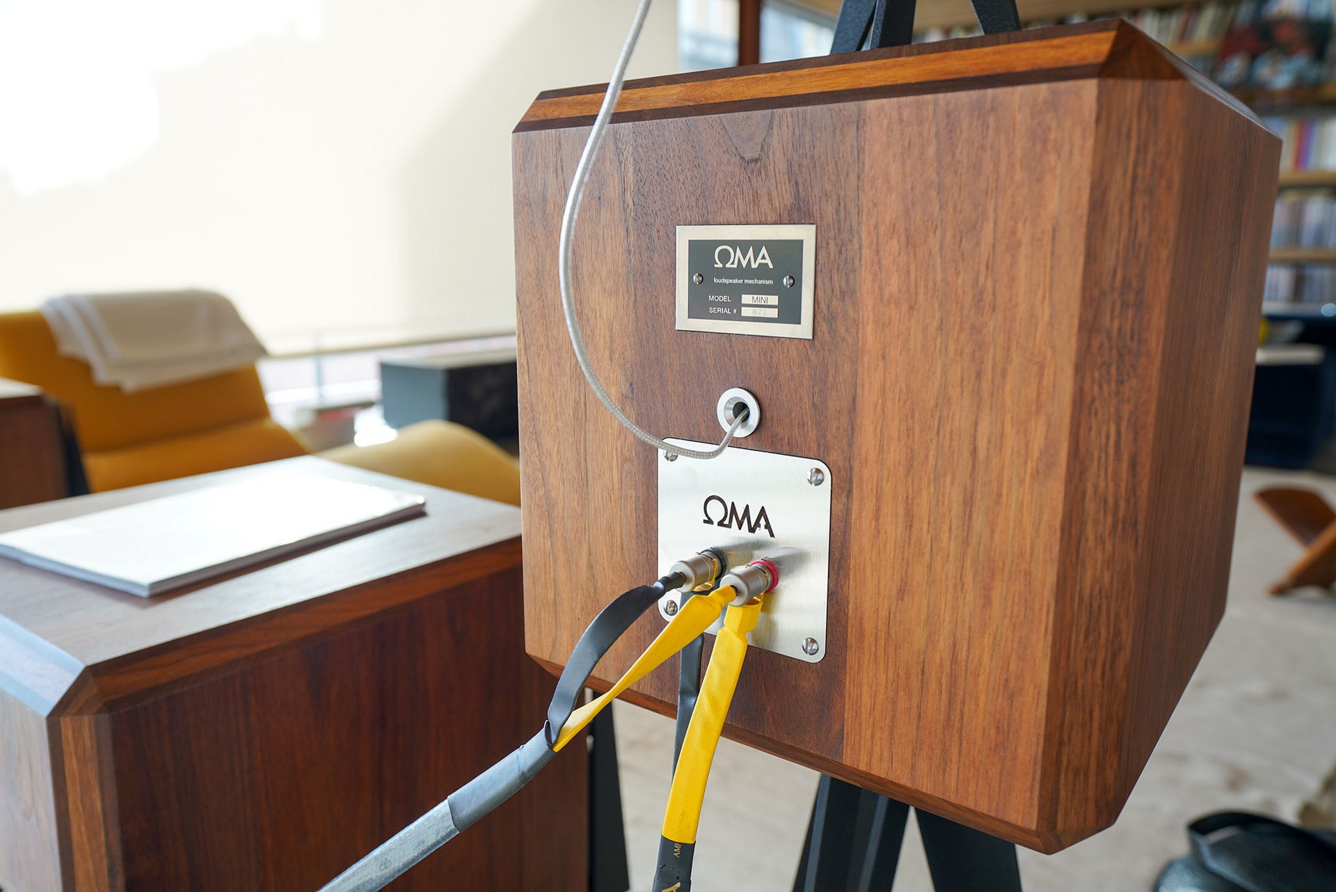 Les enceintes sont atypiques, mais très musicales, il s'agit des Mini du fabricant américain Oswald Mills Audio.