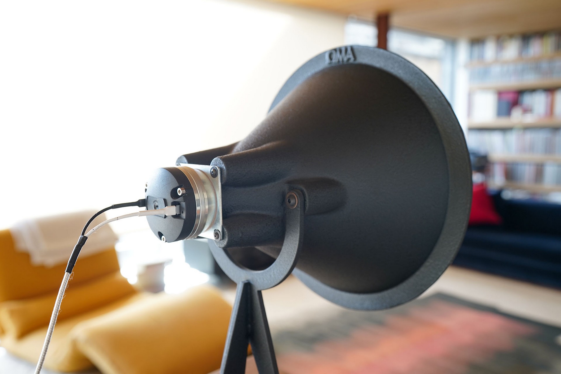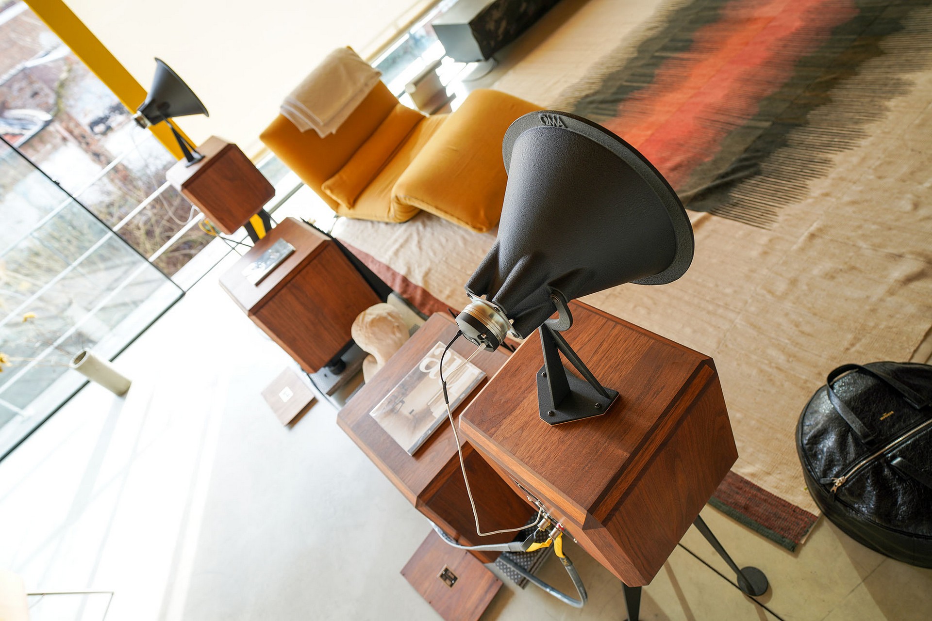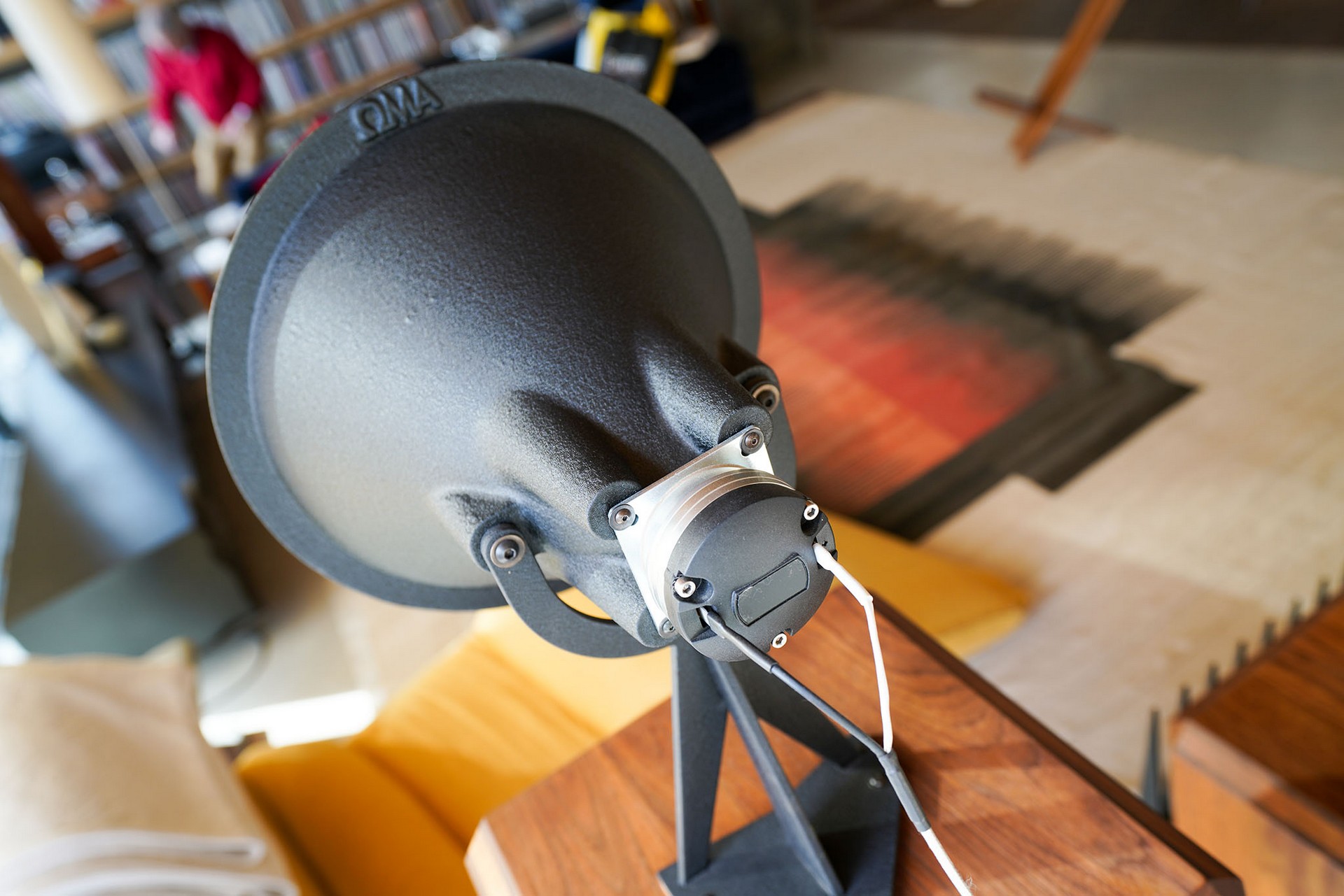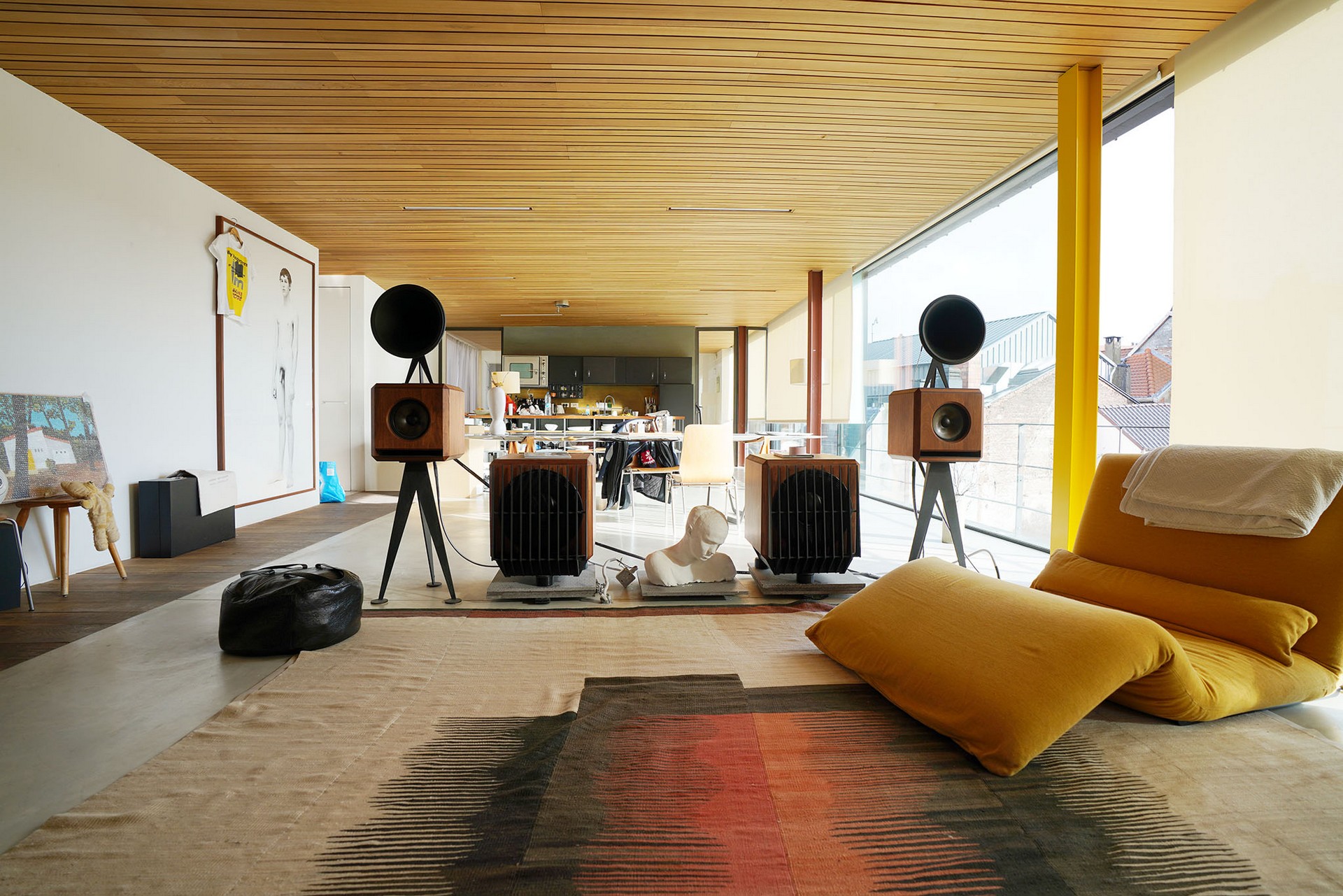 Les enceintes sont atypiques, mais très musicales, il s'agit des Mini du fabricant américain Oswald Mills Audio.