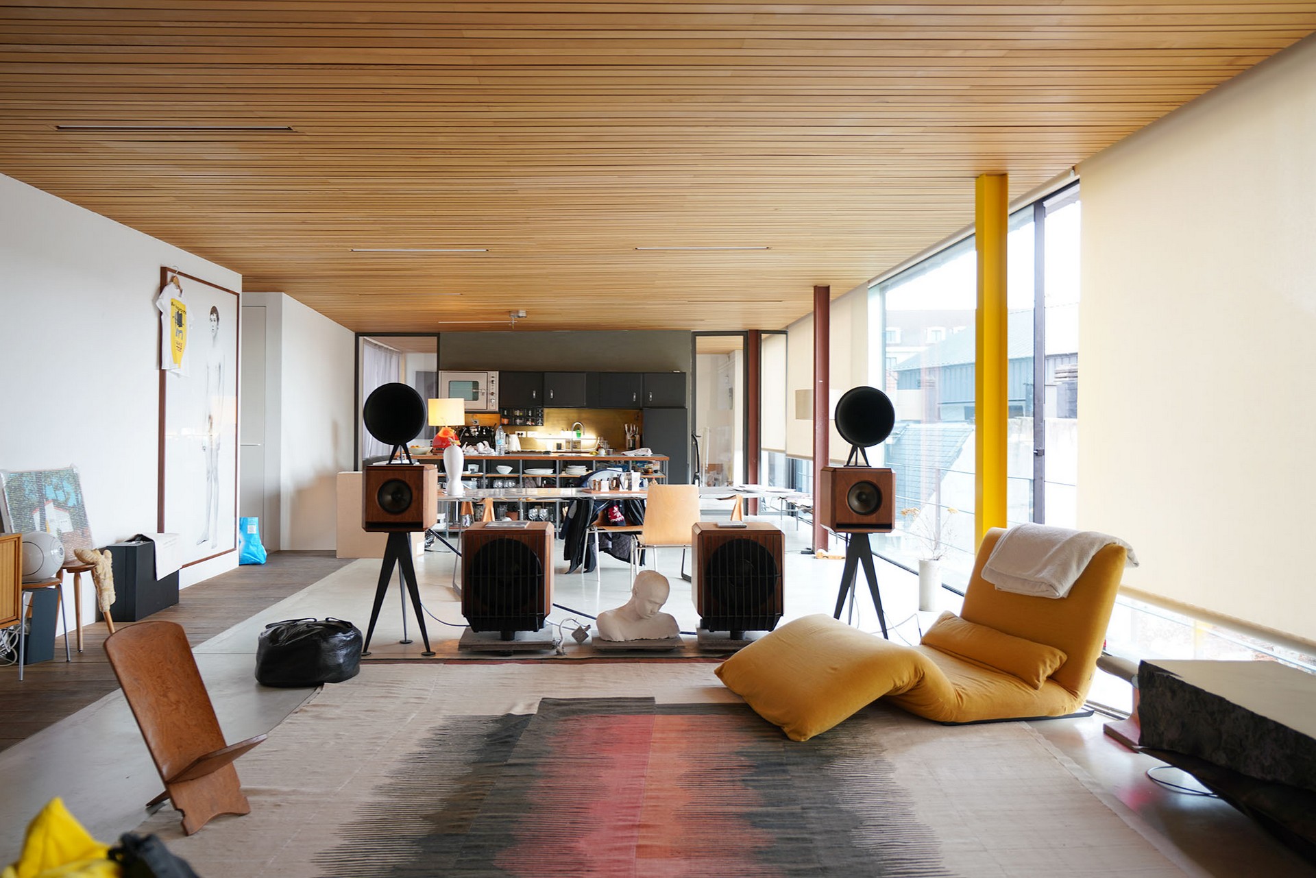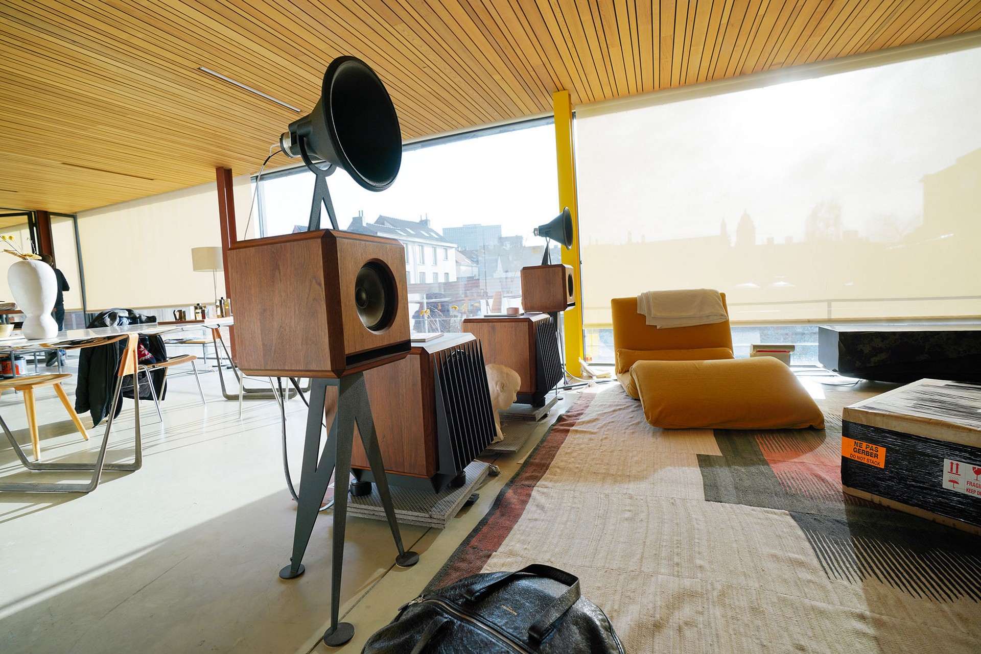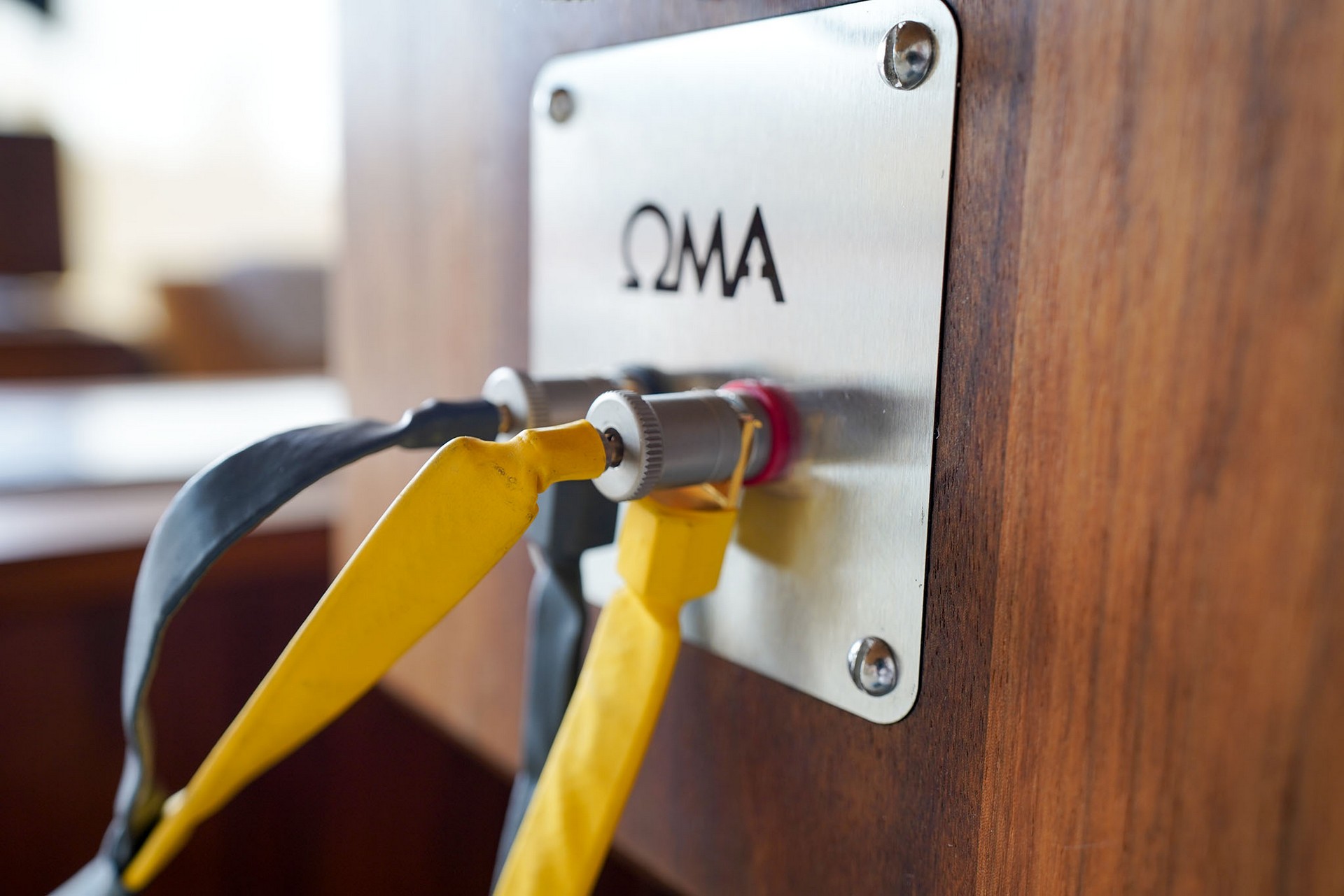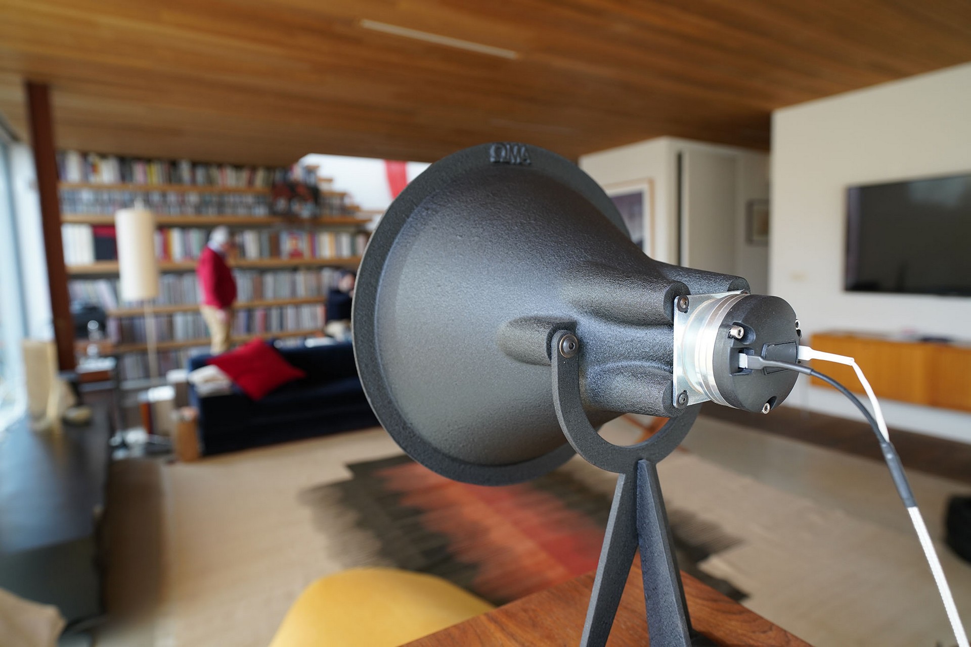 Les enceintes sont atypiques, mais très musicales, il s'agit des Mini du fabricant américain Oswald Mills Audio.