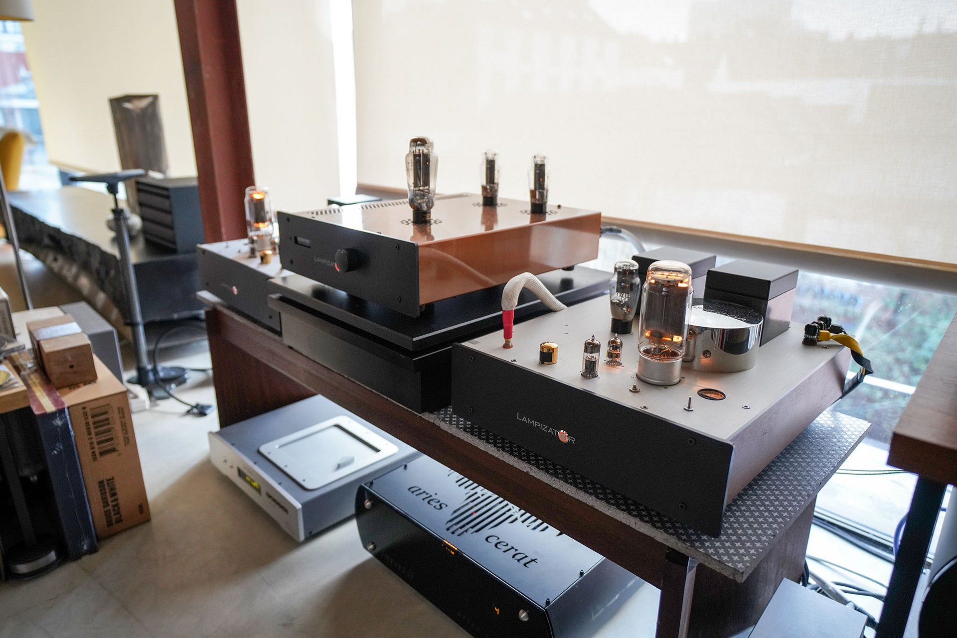 Les blocs de puissance sont les modèles monophoniques Lampizator GM70s d'une extrême musicalité et embarquant des montages à tubes savamment pensés.