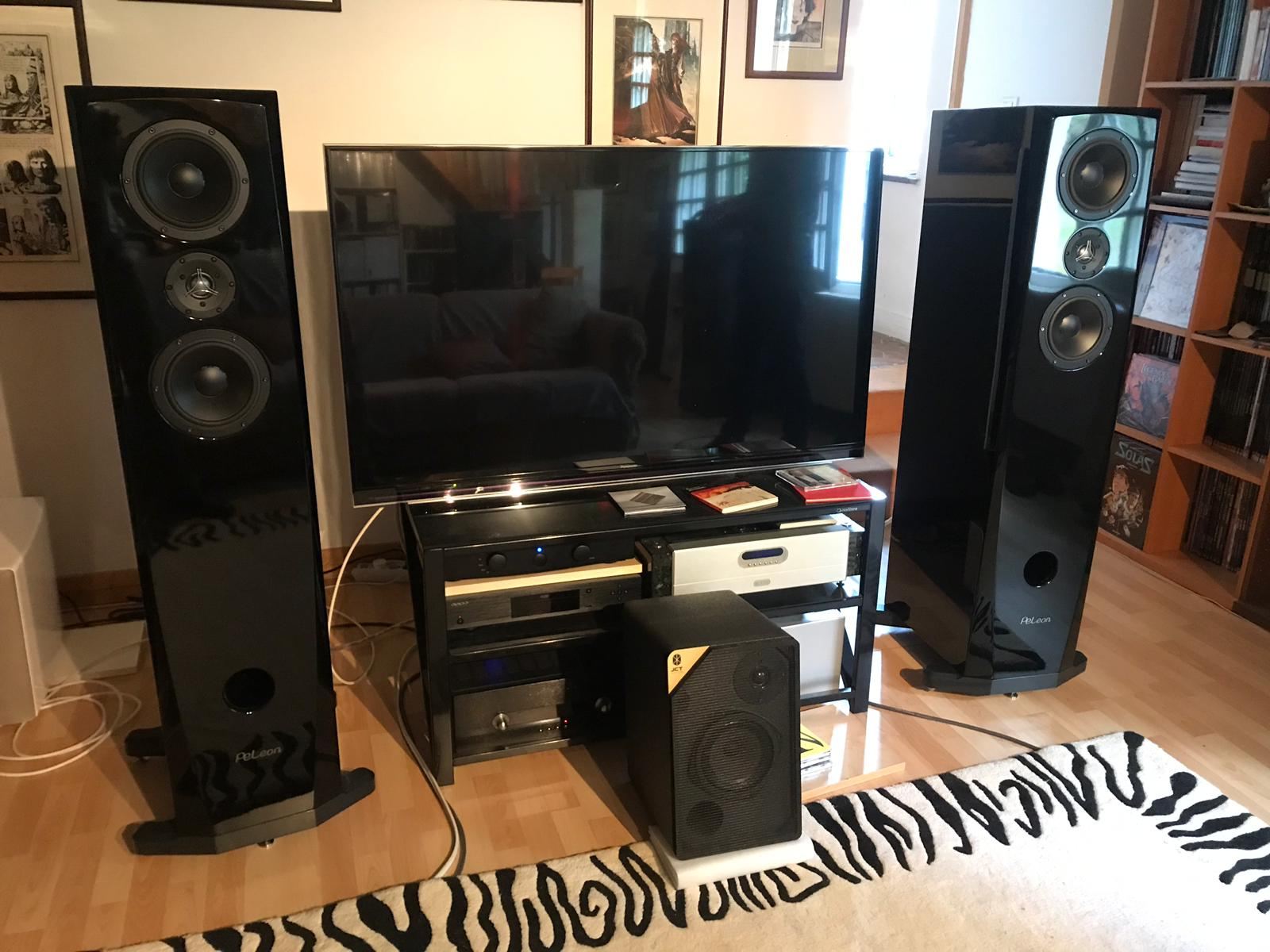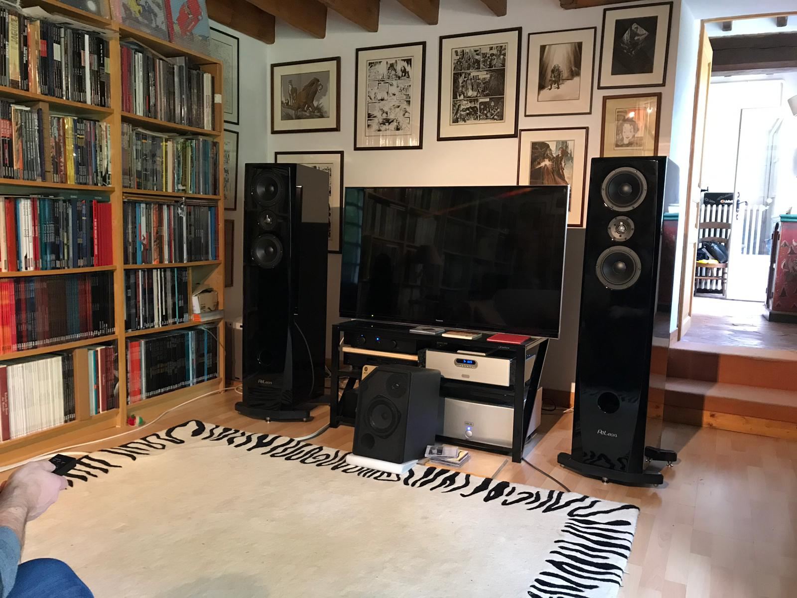 Stéphane était à la recherche d'une enceinte avec du corps, capable de charger sa belle et grande pièce, sans la submerger de bourdonnements intempestifs, et osons le dire, l'Intégrale aime ce genre de défis.