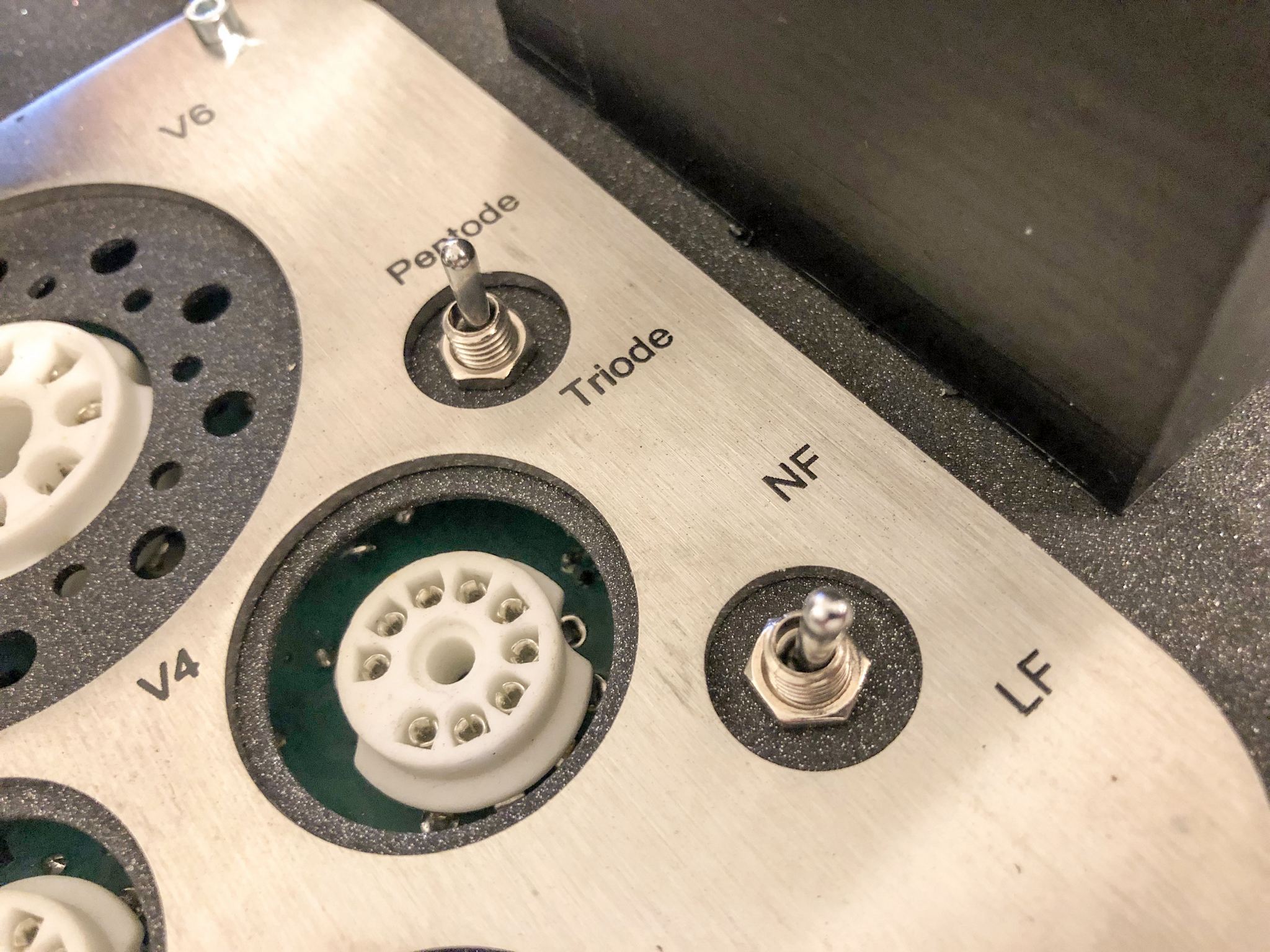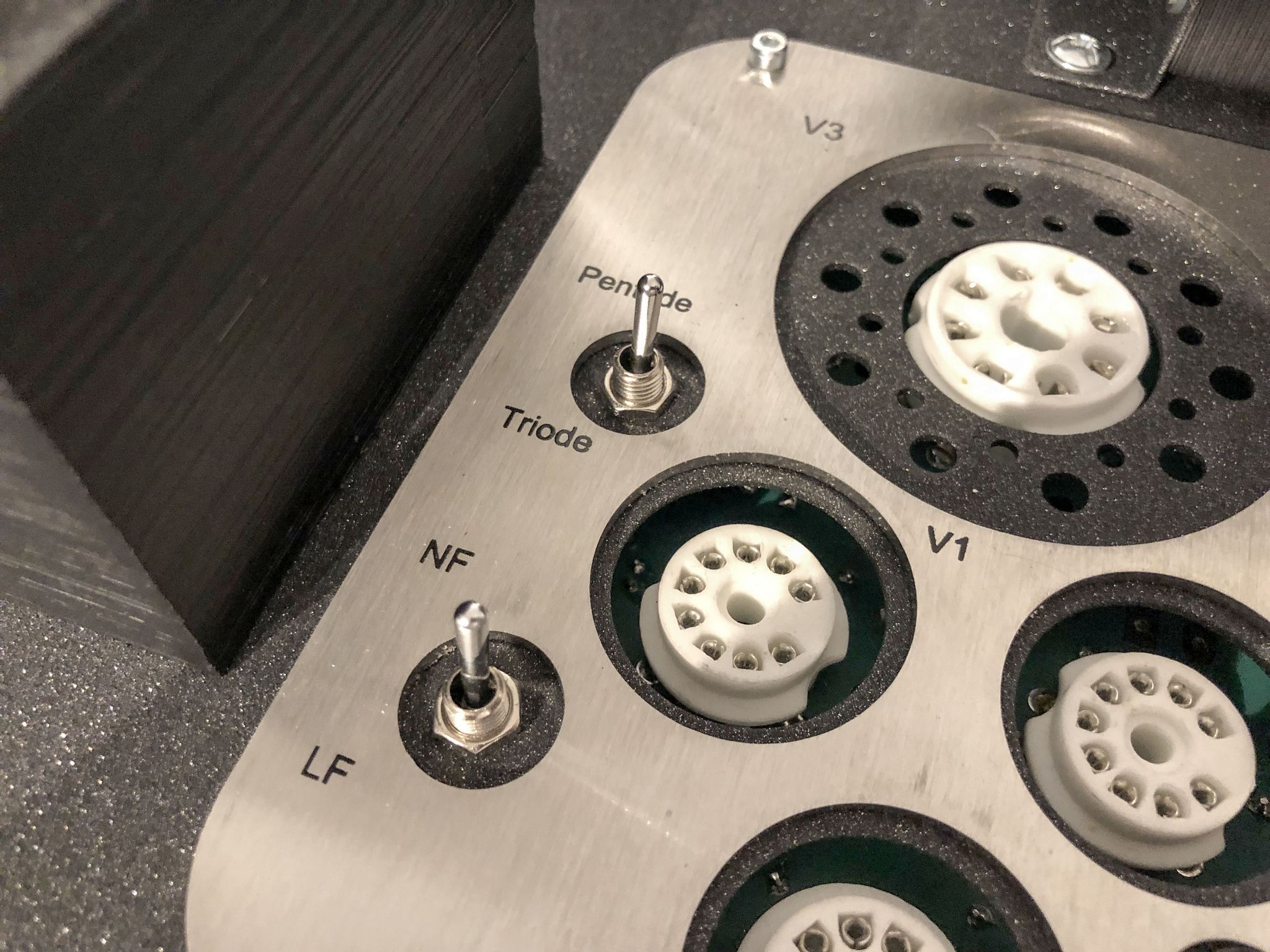 Le fonctionnement triode ou pentode (ultra linéaire) ainsi que la quantité de contre-réaction sont sélectionnables via un commutateur.