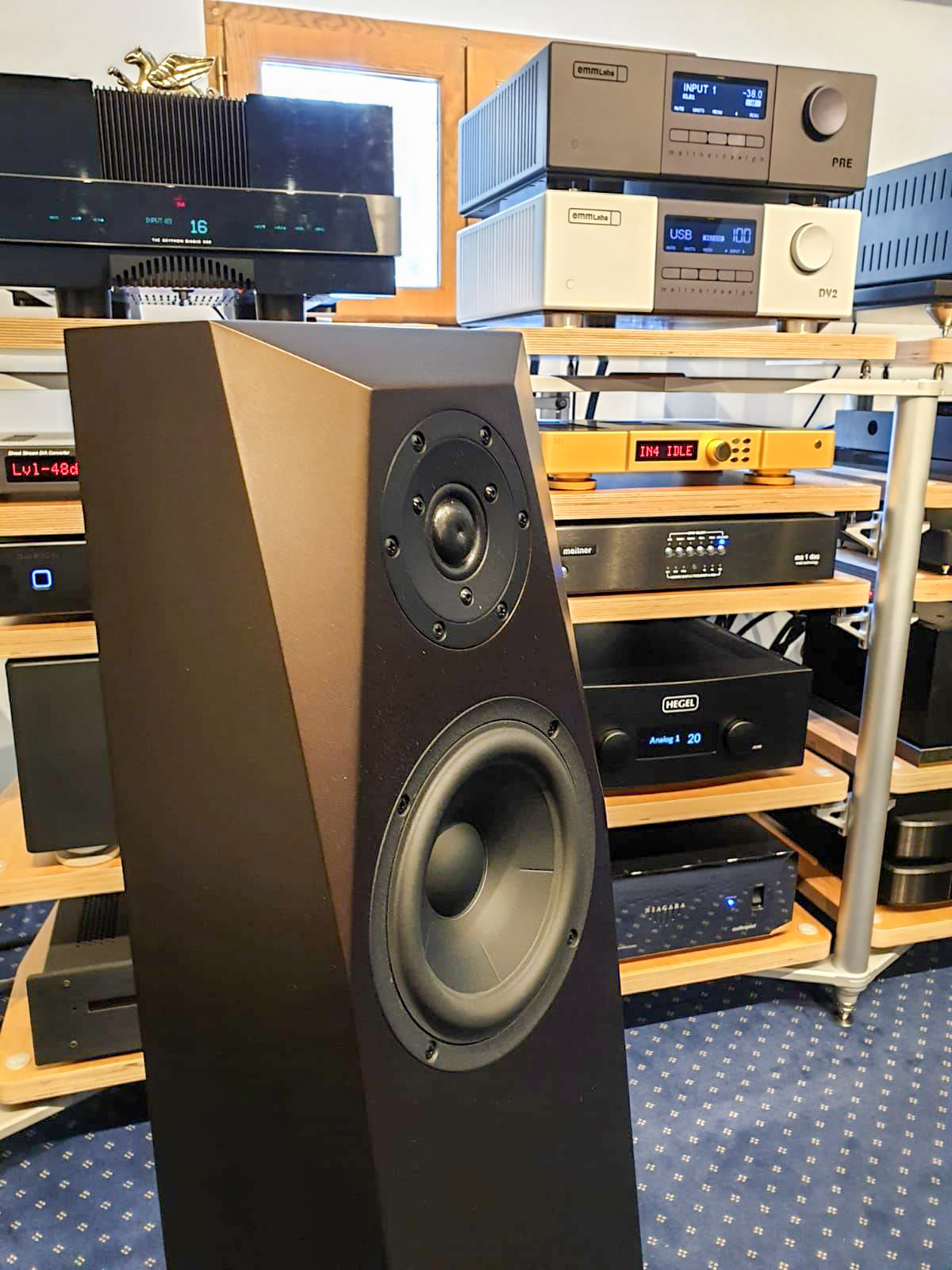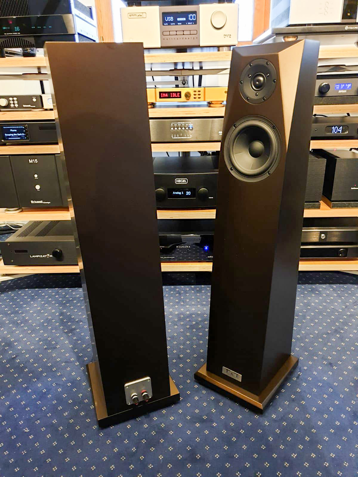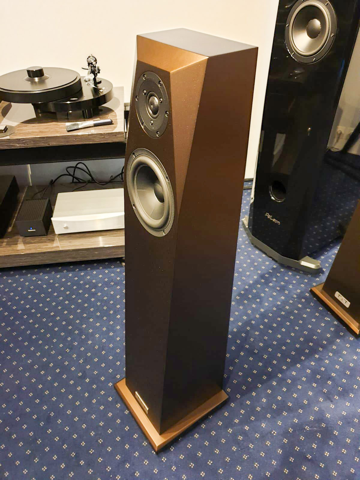 Nous sommes littéralement tombés sous le charme de la finition Marrakech, savant mélange de bronze, brun, doré et aubergine, qui nous rappelle certains tons d'enceintes Magico ou Kharma.