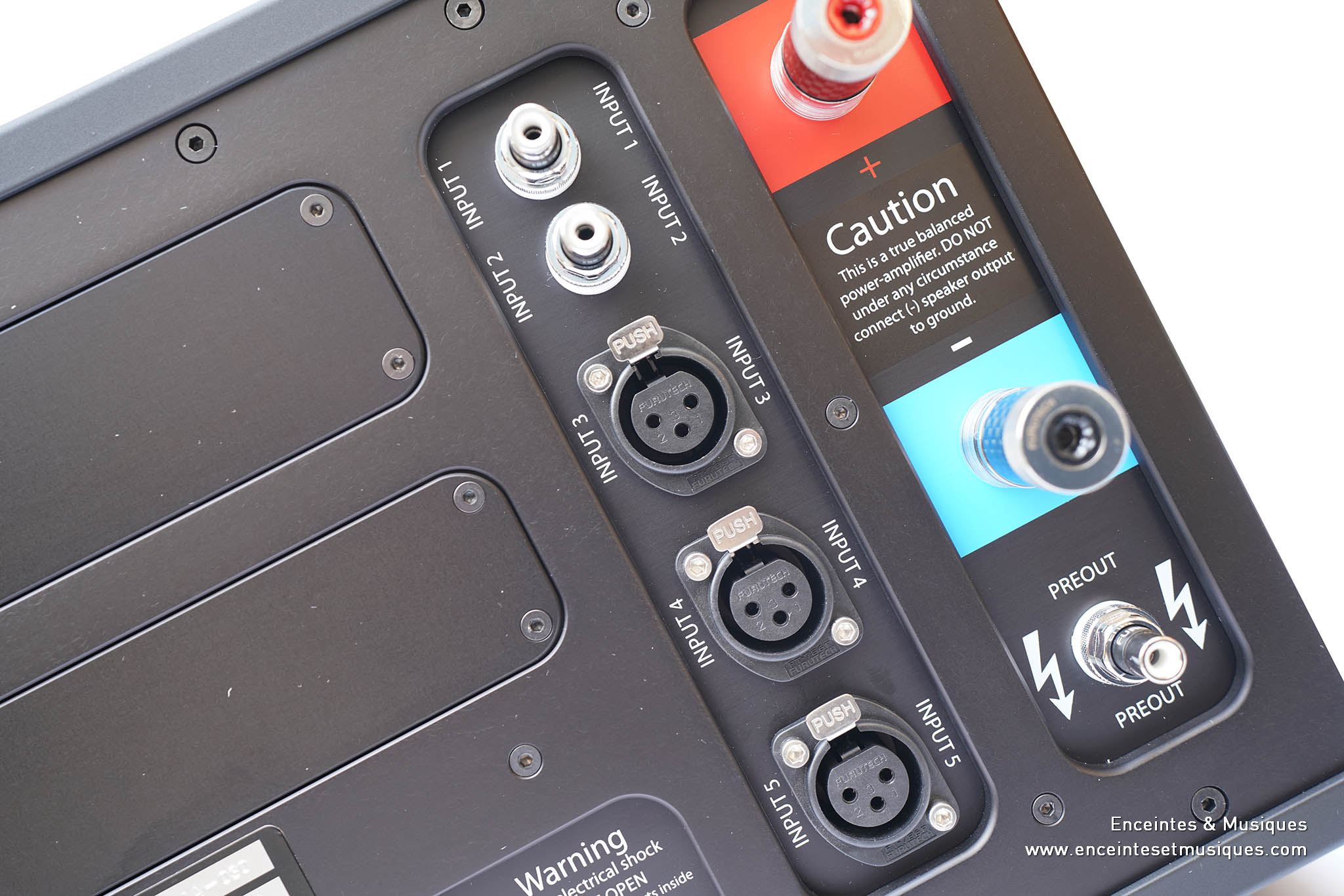 La connectique offre 3 entrées analogiques en XLR et de 2 entrées en RCA. On peut également en option y intégrer un module DAC/Streamer complet, déjà connu sur le RI-101 / RD-101, mais encore optimisé et amélioré, avec entrées asymétriques. Il est également prévu un étage phono avec deux entrées asymétriques, un support MM/MC et des réglages de charge et de gain individuel. Un véritable couteau suisse mais cette fois ci dans la gamme Laguiole.